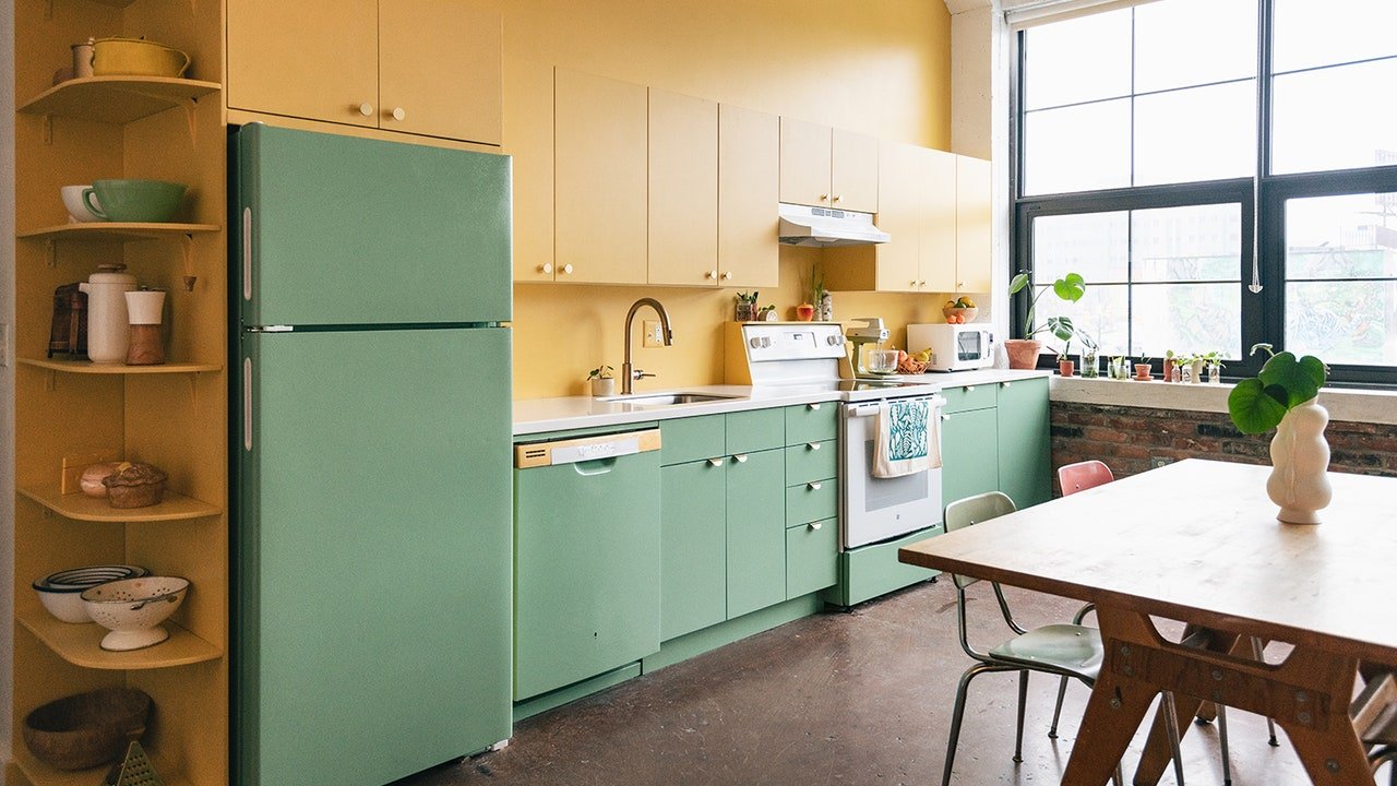Depending on your paint choice, you may not need to prime. Wlasichuk opts for Annie Sloan Chalk Paint as it requires minimal prep (no primer), works equally well on different surfaces like plastics and metal, and dries quickly. For her vinyl, veiny-textured white fridge, Hom used Zinsser Ultimate Stain Blocker primer. A stainless-steel fridge will benefit from a coat of Farrow & Ball Metal Primer & Undercoat. Apply two coats with a four-inch foam roller and one-inch angle brush (in tight spaces).