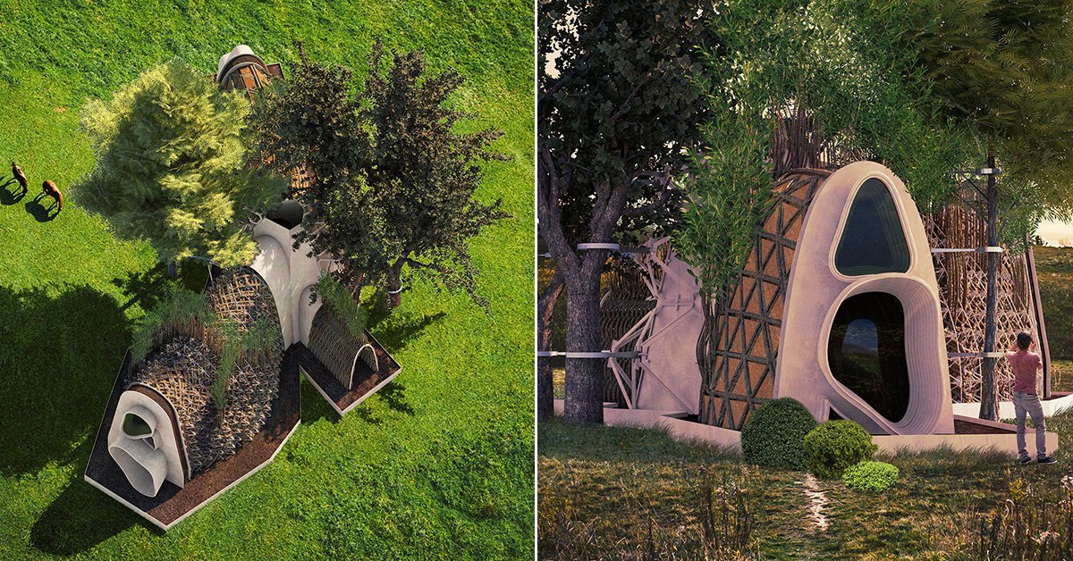 ‘this home concept is intended to replace the outdated design solutions at habitat for humanity,’ said terraform one. ‘we propose a method to grow homes from native trees/ woody plants. a living structure is grafted into shape with prefabricated computer numeric controlled (CNC) reusable scaffolds. therefore, we enable dwellings to be fully integrated into an ecological community.’