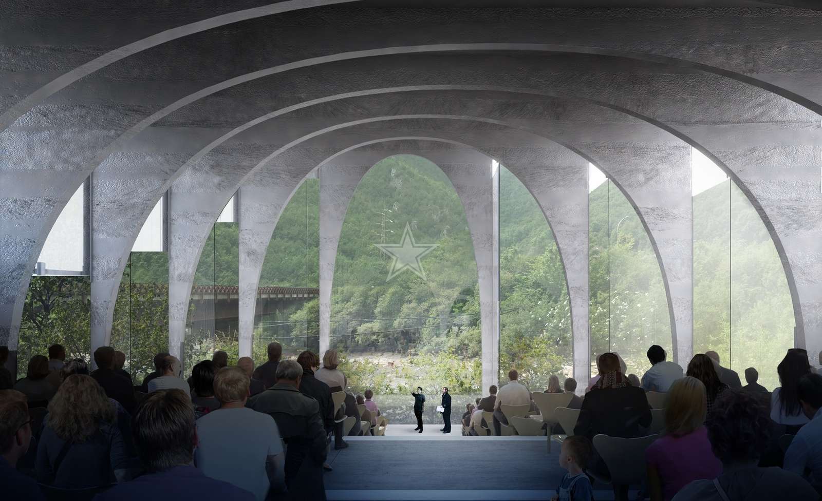 These new Hermès leather workshops emerge from the exact site’s outline. They are drawn by the nearby nature and are placed at the perspective of the great region’s altimetry. Its orthogonal grid, orchestrated by its internal functioning, unfolding on the land, meeting the ground, encompassing the landscape, and dialoguing with the territory. The great ‘spanning’ arches follow the workshops frame.