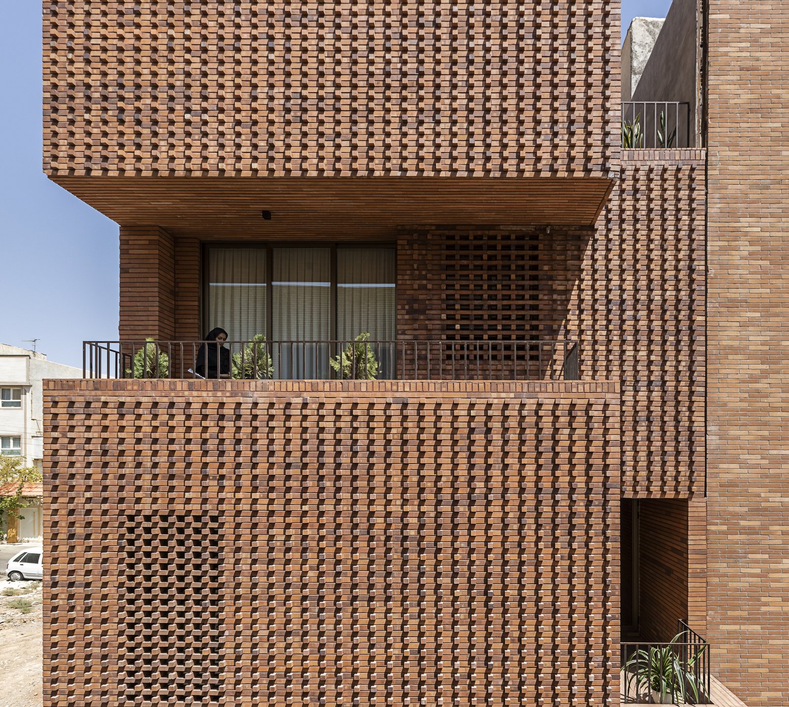 Materials used in the project were selected to be natural, ecologically aware, and indigenous to the local environment. Qom is an arid city, with brick being the primary building material in traditional architecture. However, for decades stone has replaced locally-sourced brick in Qom’s architecture, as developers and buyers alike view stone facades to be more luxurious and expensive. The architects’ priority to use locally sourced and environmentally conscious materials led them to explore brick-laying patterns for a façade that is both iconic and unique, and which separates itself from the construct of being old-school or generically vernacular.