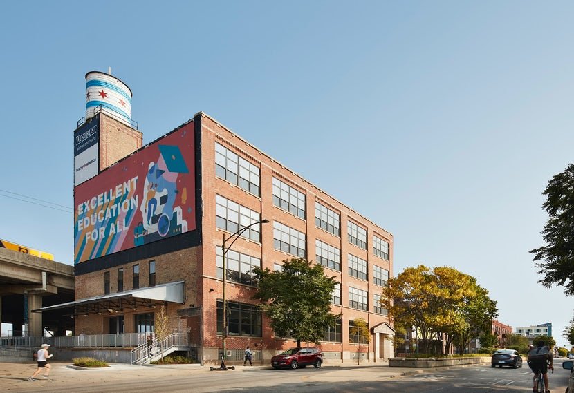 Designed for refuge and recovery, The Night Ministry’s new home provides an oasis for security, independence, and safety for young adults facing adversity. Three floors of a 1910 heavy-timber manufacturing building, known for its large murals covering its facades, are renovated for the organization’s new headquarters. The space includes: “The Crib” – an overnight shelter for young adults ages 18-24, a serving kitchen and dining space, administrative offices, meeting rooms, and multi-purpose programming space for social services, job assistance, and group activities.