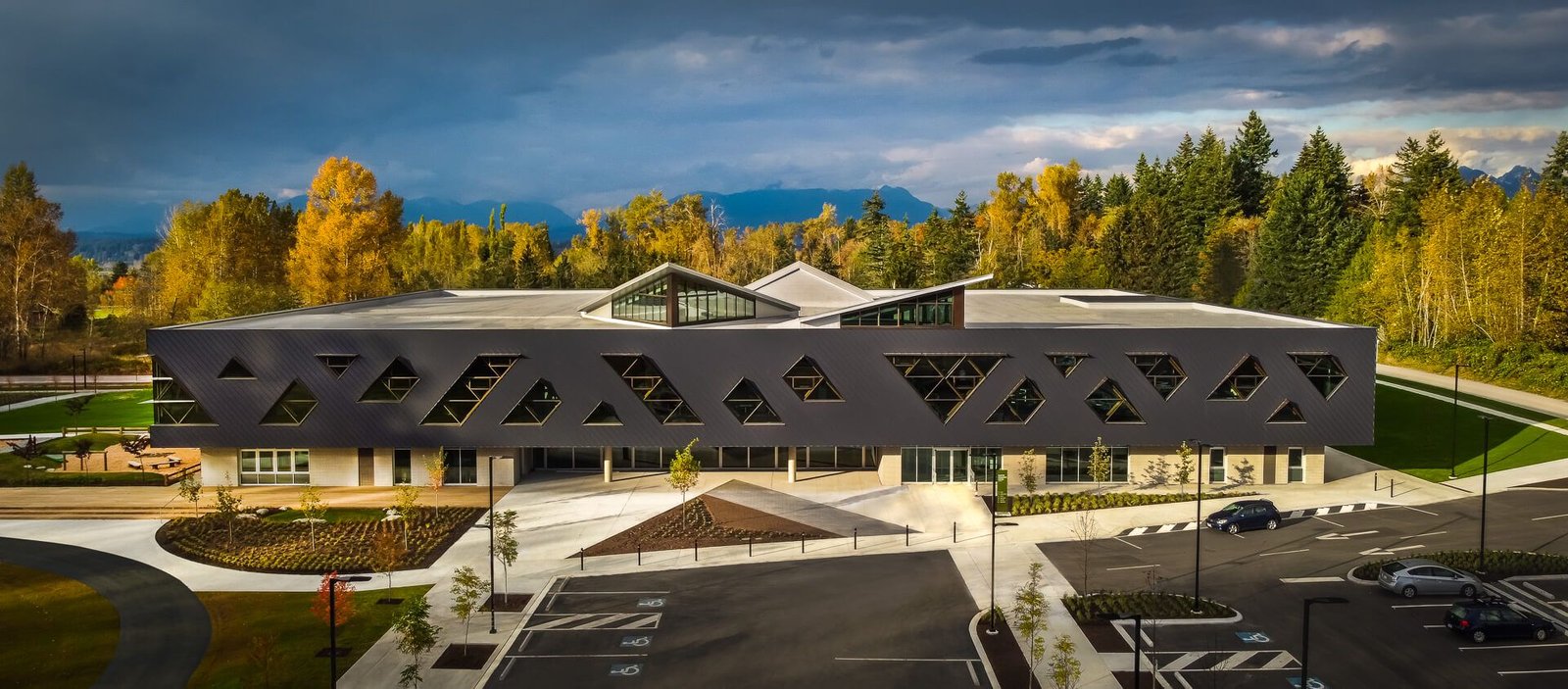 Located adjacent to and integrated with Clayton Park in Surrey, which is part of the sprawling Metro Vancouver area and the second-most populous city in British Columbia, Clayton Community Centre has been bestowed with at least one major accolade ahead of its Passive House certification. In November, the project received the bronze IOC IAKS Award from the International Olympic Committee (IOC), the International Paralympic Committee (IPC), and the International Association for Sports and Leisure Facilities (IAKS). As noted in a City of Surrey press release, the biennial awards are “the most sought-after prizes for sports, leisure and recreational facilities.”