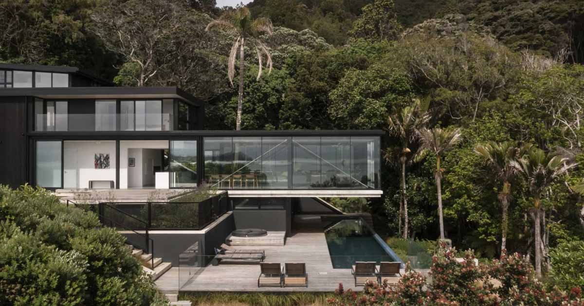 Daniel Marshall Architect (DMA) has shared photos of a new home they designed in New Zealand, that includes a cantilevered living room.