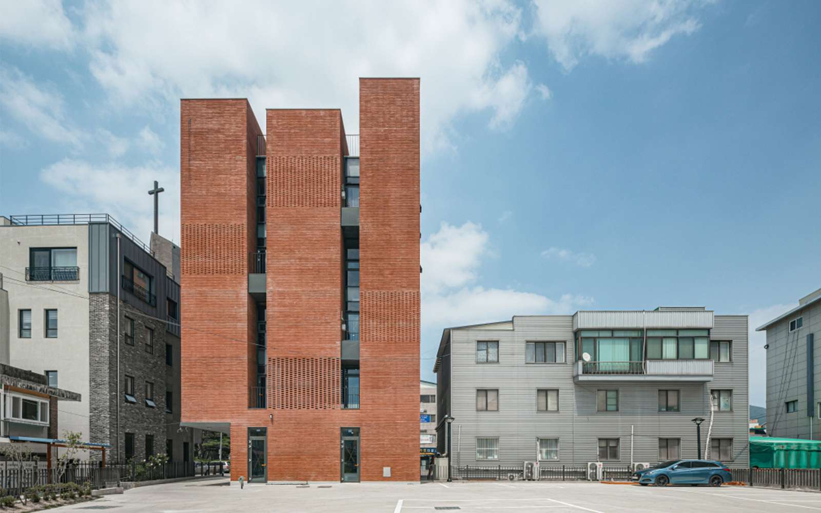 Finishing plan – Bricks were turned and stacked on each floor to give the building a three-dimensional effect according to sunlight. The elevation was designed to create various sunlight and lighting between the space-stacked brick walls. In particular, various types of terraces on each floor created contact points with the outside in commercial spaces. The sense of openness that may be insufficient in rental shopping malls was supplemented with terraces, changing the space that could be monotonous.