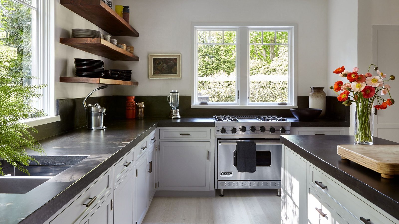 The men settled on a plan to give the house, which was built in the 1950s, a lighter look. Matt McKay, Sawyer’s former director of interior design, led the project under Sawyer’s guidance. “We had dark floors and dark walls, and the goal was to lighten it up completely so that the house had a much better relationship to the garden,” says Sawyer.