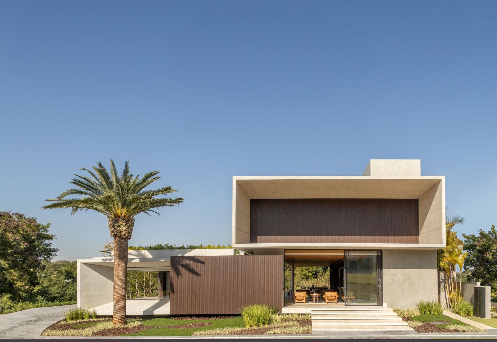 Right at the entrance of the house, a large open space allows the complete integration of the living, dining, and gourmet room. In the volume on the left, the toy library communicates with the leisure area and the swimming pool, in addition to a guest room, which allows greater freedom for the visitor. Still on the ground floor, to the right are the service environments, such as the kitchen and service area.