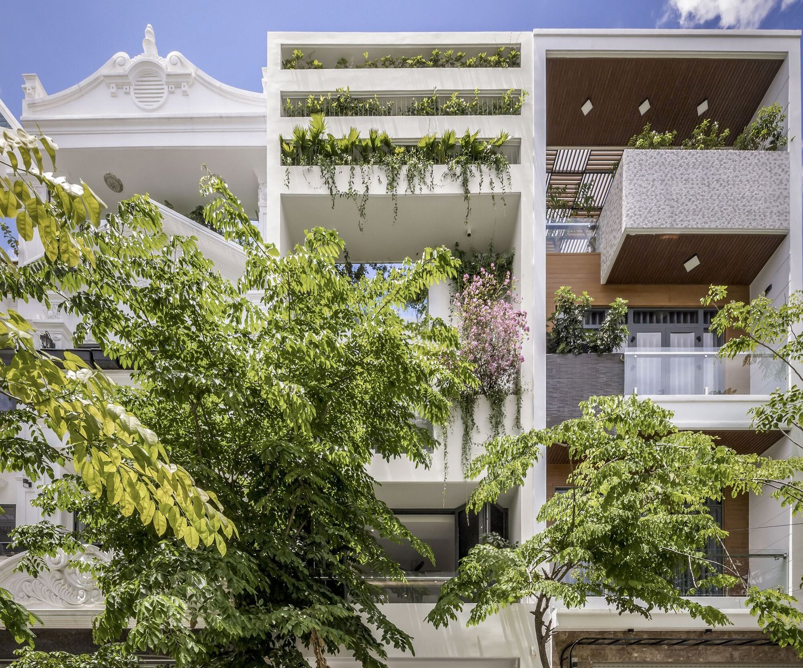 The older’s bedroom is added on between two gardens on the ground floor, 2 bedrooms for 5 years old-child and parents on the second floor, the living-dinning space is on the first floor as a public space so that all members can come together. Every category space has two sides ventilating to voids or gardens by sliding doors to provide cross-ventilation. A small exercise room open to the garden is on the rooftop where can observe sunlight through the trees in the morning.