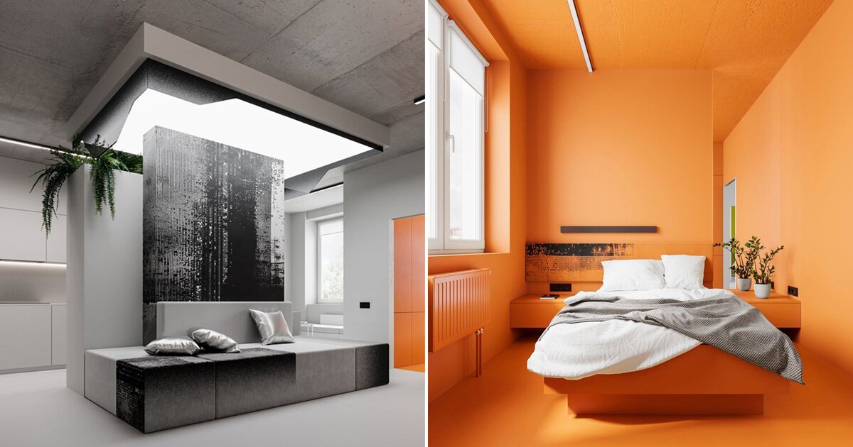 UR bureau’s ‘glitch condo’ pairs cool greys with daring accent colours