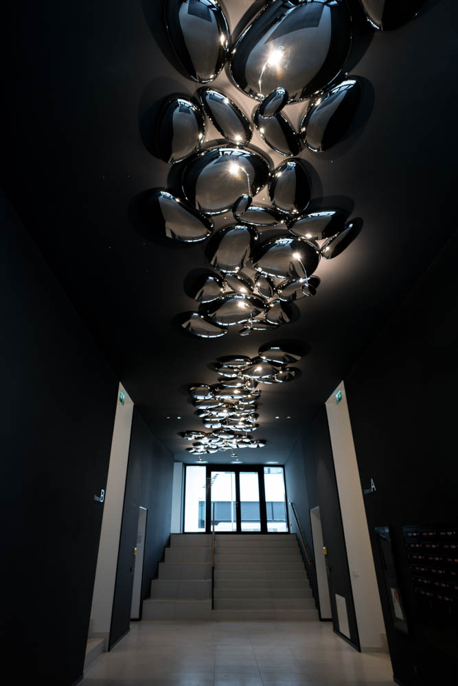 Alongside studio and 1½ room apartments at sizes of 27 m² to 40 m², there are also 2-5 room apartments with floor areas ranging from 44 m² to 156 m². Apartments with private gardens are located on the mezzanine level, with luxury 206 to 296 m² penthouses with own private roof gardens on the top floor.