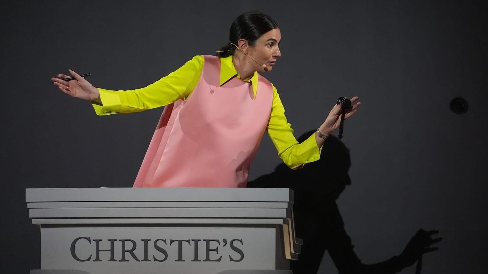 Auctioneer Georgina Hilton sells the top lot of the evening, Jean-Michel Basquiat’s “Untitled” for $22,950 during Christie’s 21st Century Evening Sale on November 21, 2024 in New York City (photo by Selcuk Acar/Anadolu via Getty Images)