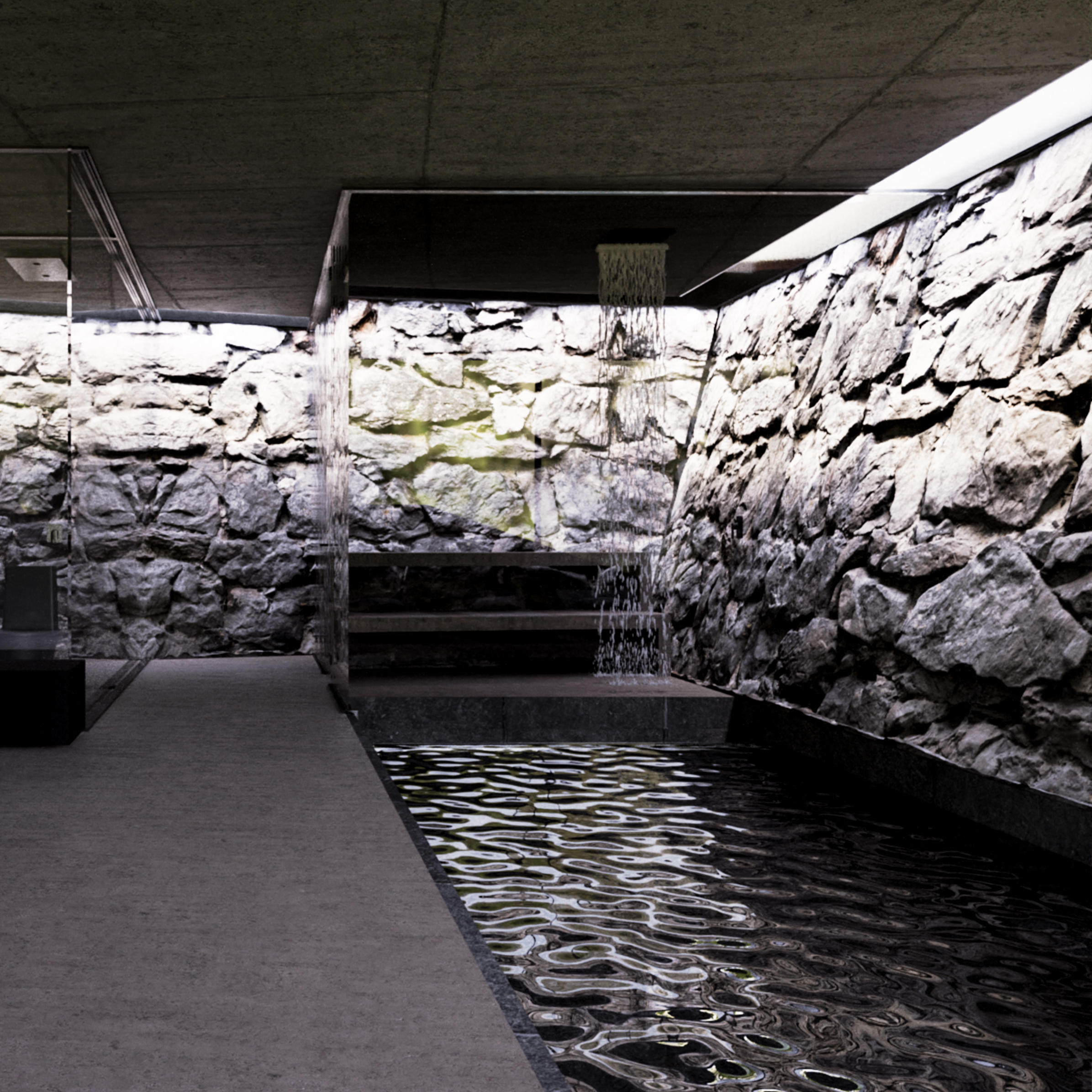 It is in this forest where the spa is located. The spa was designed to be a separate volume, independent from the house and its shape occupies the empty spaces between trees, avoiding suppression. In it are found a sauna, the spa, changing rooms, a resting area and a gym..